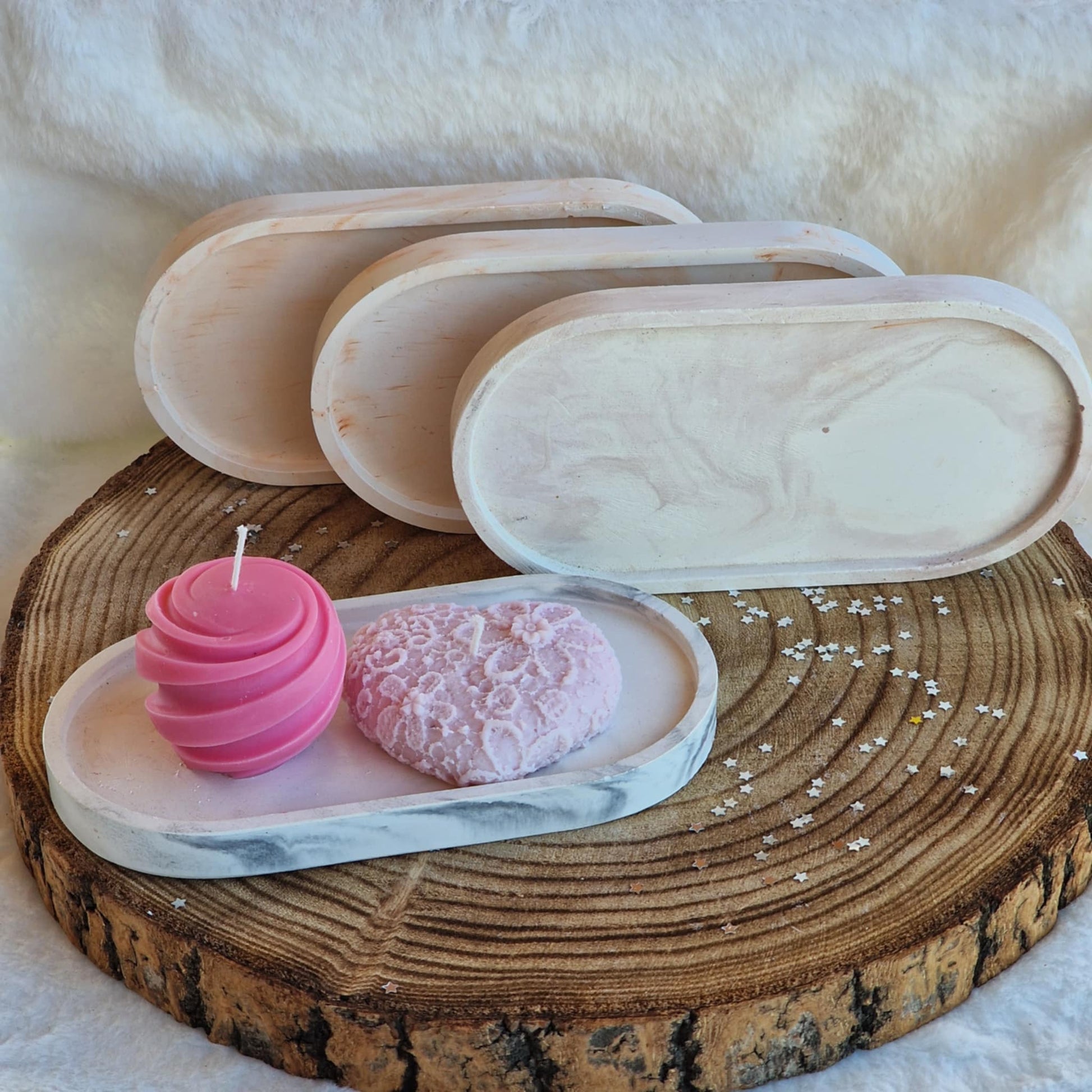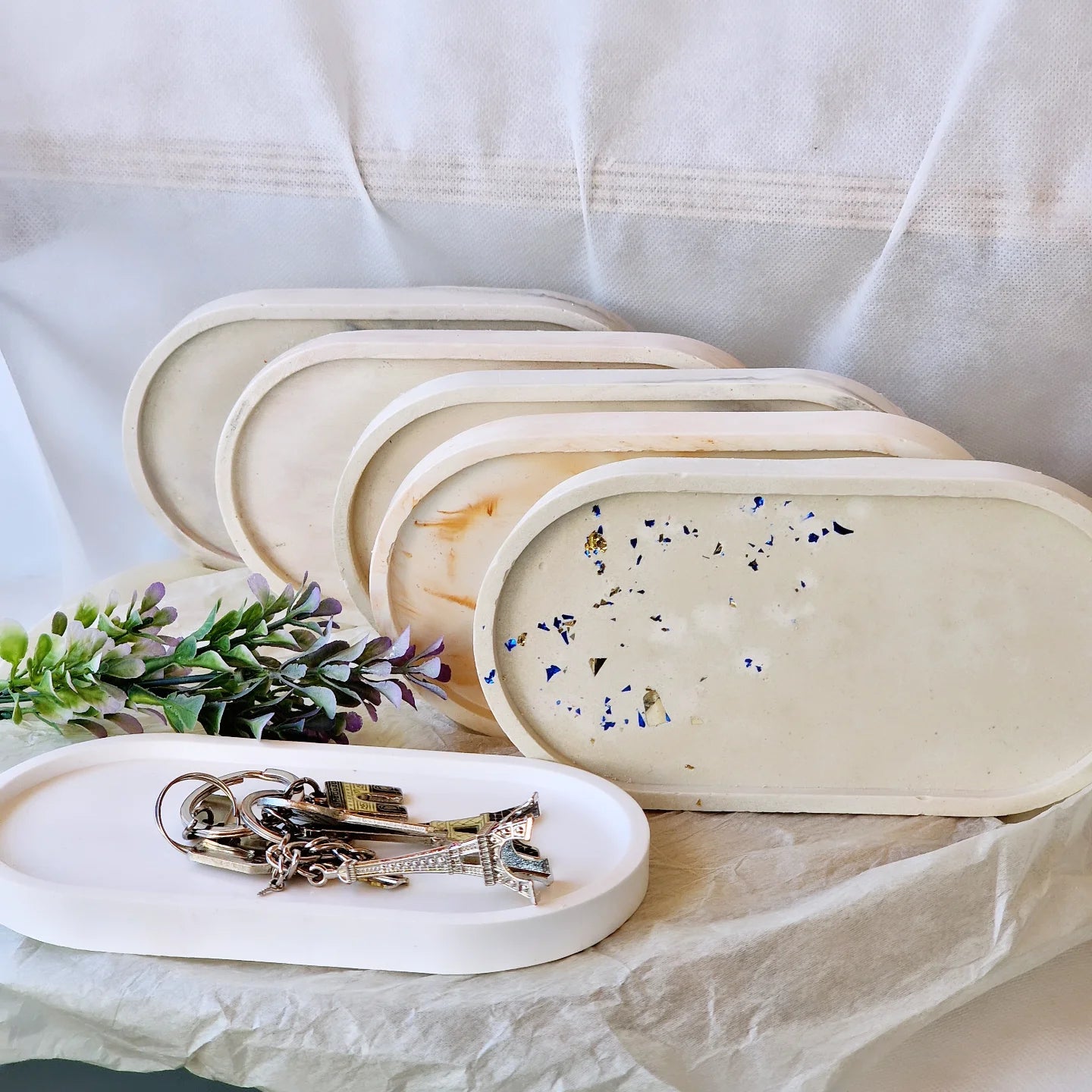 "Each color variation reflects the unique swirls and tones embedded in the material of the tray."