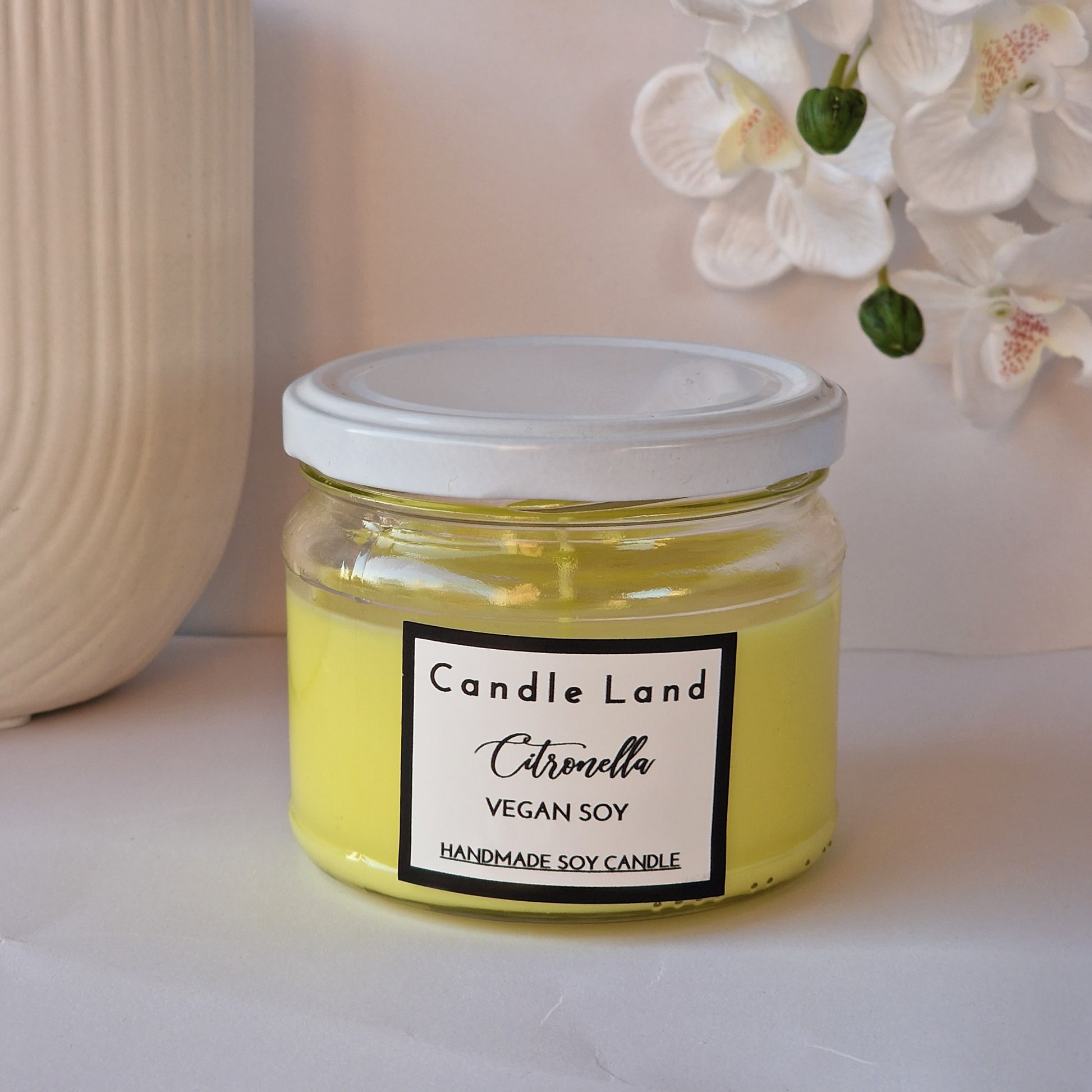 The citronella candle is a natural candle infused with citronella essential oil, derived from the lemongrass plant. It is well known for its insect-repelling properties, especially against mosquitoes, making it ideal for outdoor use during the summer months.