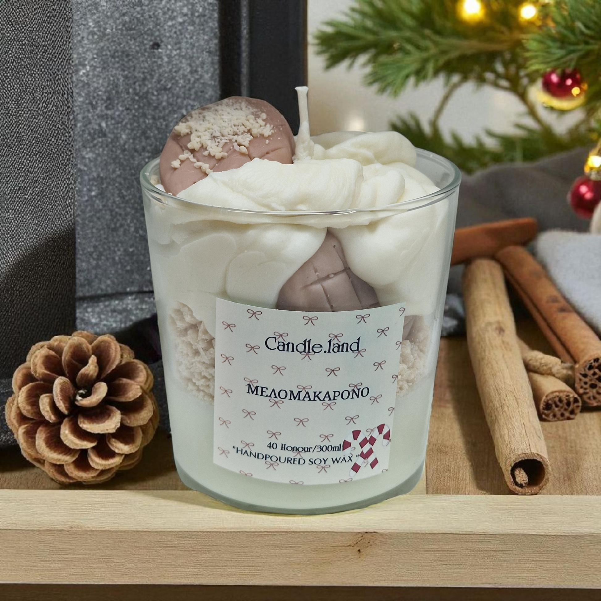 "Το κερί που μυρίζει σαν να έφτιαξες μελομακάρονα, αλλά χωρίς να λερωθείς με ζάχαρη και μέλι. Ούτε πιάτα για πλύσιμο!"