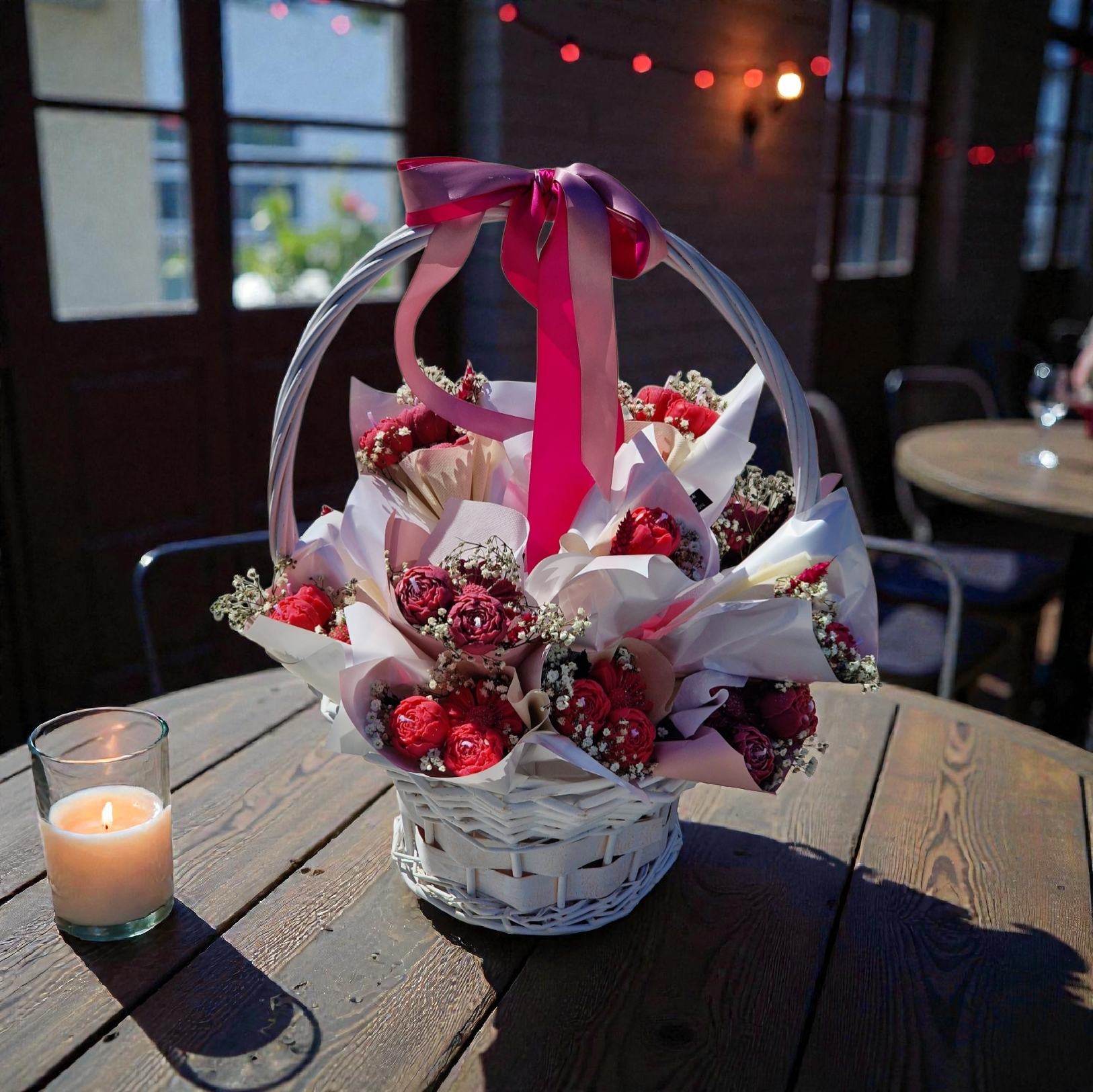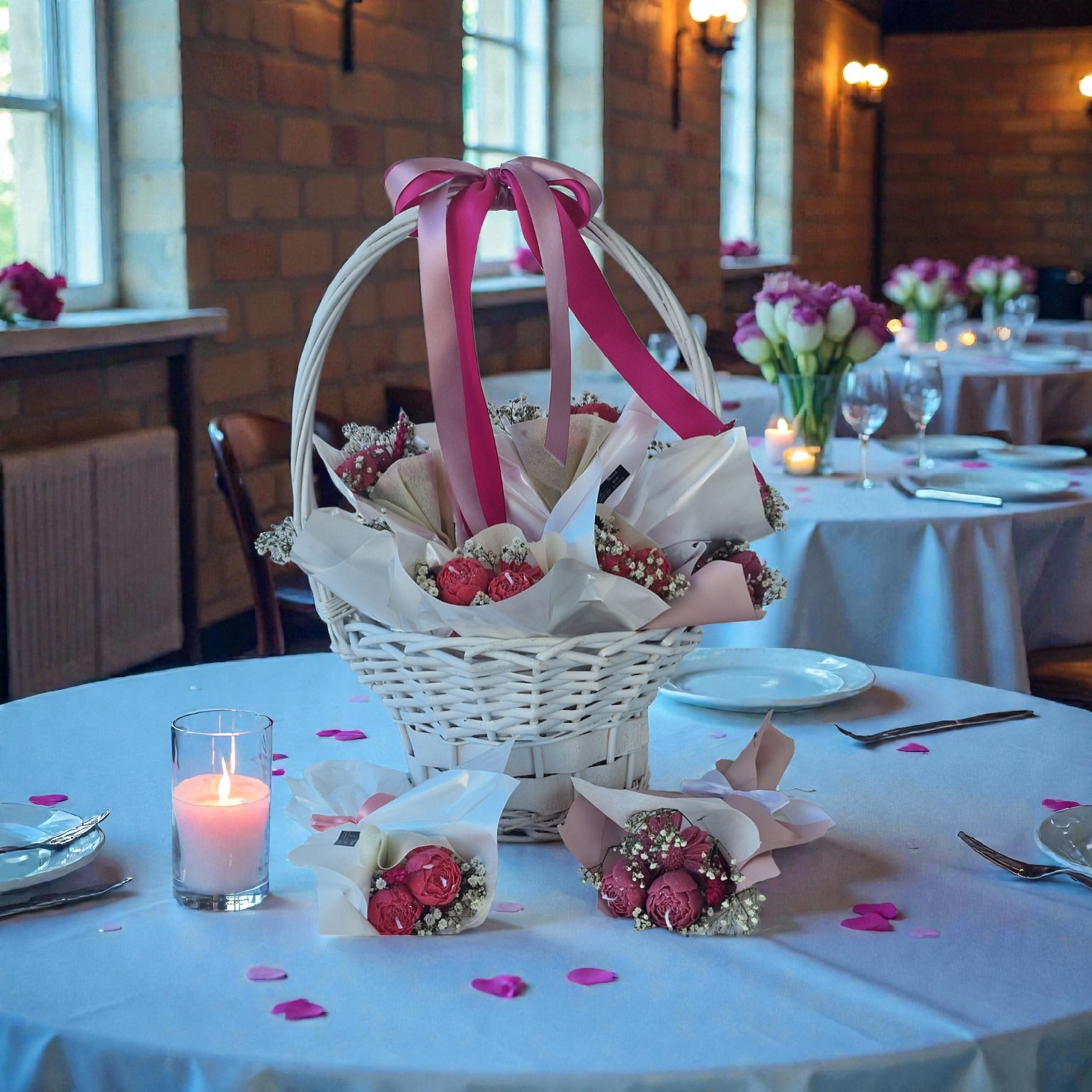 Συσκευασία: Premium περιτύλιγμα σε ροζ/λευκό με λευκό σατέν φιόγκο.