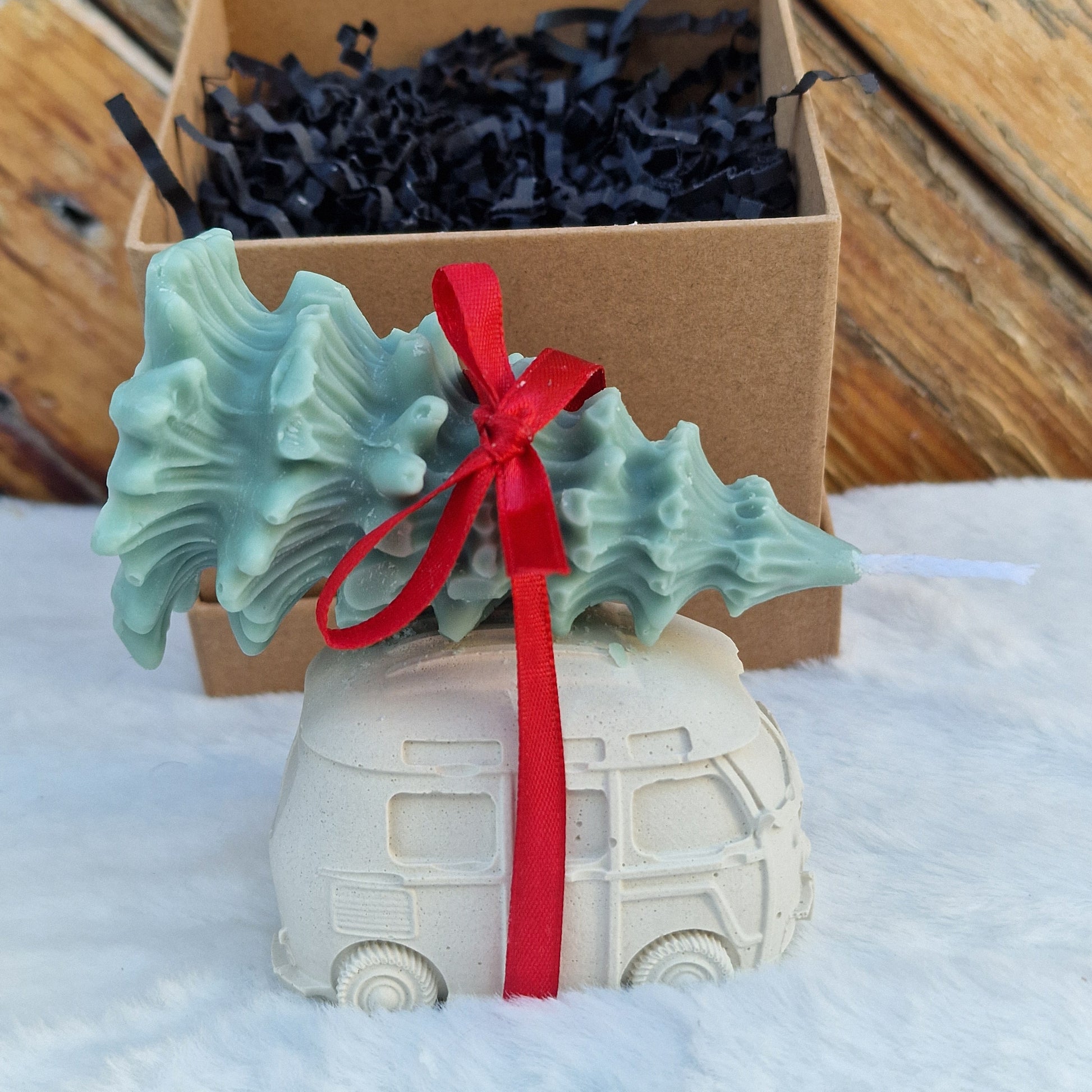 Αρωματικό δέντρο από φυσικό κερί με αναζωογονητικό άρωμα πεύκου, συνδυασμένο με διακοσμητικό γύψινο αυτοκινητάκι από πολυτελή γύψο. Ένα κομψό χειροποίητο δώρο που φέρνει αίσθηση φρεσκάδας και ταξιδιού σε κάθε χώρο.