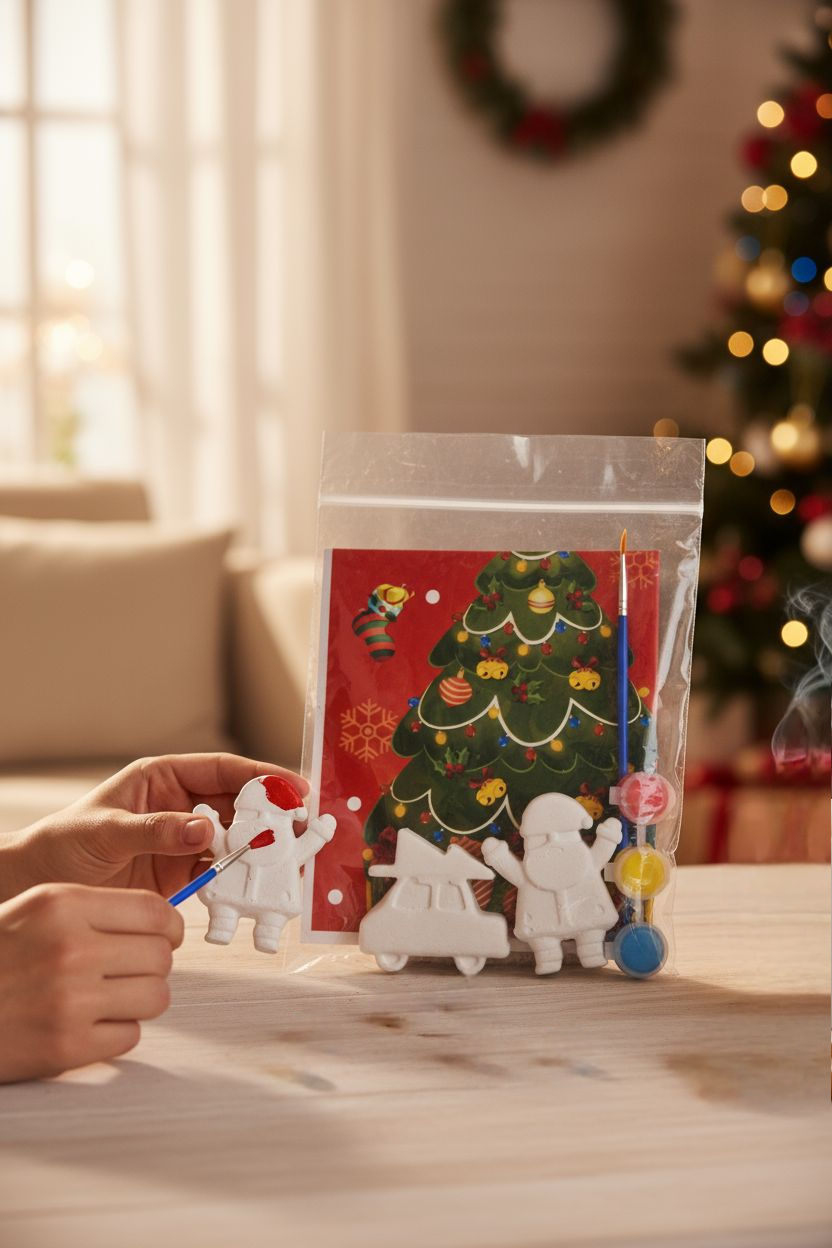2 φιγούρες χριστουγεννιάτικες απο γύψο για ζωγραφική – Σετ με 3 χρώματα νερομπογιές & πινέλο σε συσκευασία.